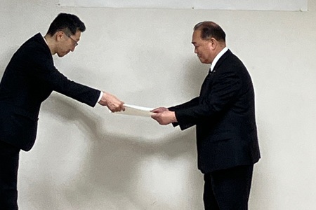 この度、2025年度の安全パトロールにおいて「澄川変電所配開改良および関連除却のうち本館改修工事(2期)」が優秀な成績を収め、3月10日、北海道電力関連工事安全協議会 中央土木建築部会 小山部会長より、佐藤(護)専務ならびに作業所所長の奈良へ表彰状が授与されました。