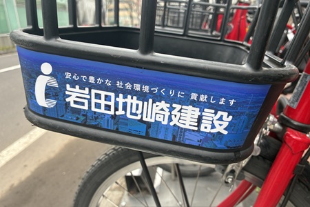今年も4月5日より営業を開始しているシェアサイクル「ポロクル」の車体に、当社の社名広告を掲載しました。