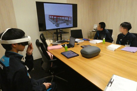 午前中は、建設業の仕事や岩田地崎建設についての説明を行い、午後からは社内の各部署を見学する会社探検を実施しました。その後、VR・AR体験を通じて最新の建設技術に触れ、「ほくほく札幌ビル」の着工から竣工までの工事記録をまとめたドキュメンタリー動画を鑑賞しました。