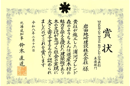 2月16日、北海道庁旧本庁舎(赤れんが庁舎)において、第1回 HOKKAIDO WOOD BUILDING 表彰式が開催され、当社が施工した「浦河フレンド森のようちえん」が木造部門を受賞しました。