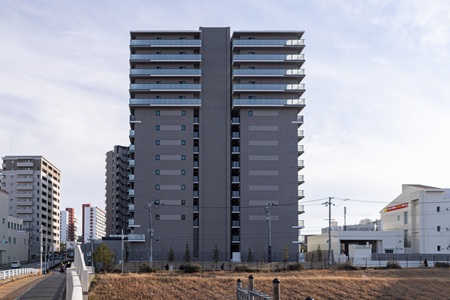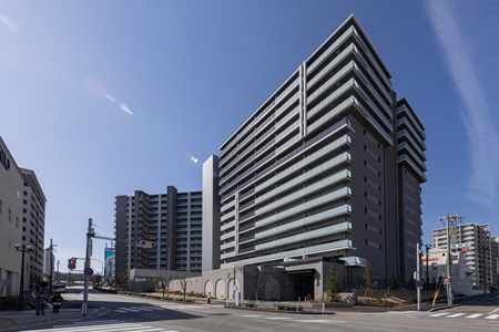 当物件は、リノベーション・神戸の一環として活性化が進む名谷駅前における大型プロジェクトでした。地上15階建ての3棟(うち1棟は地下1階あり)に加え、機械式駐車場66台、立体駐車場46台を備え、敷地を最大限に活用した計画となっています。また、大阪支店としても最大規模となるマンション新築工事であった点も特徴の一つです。