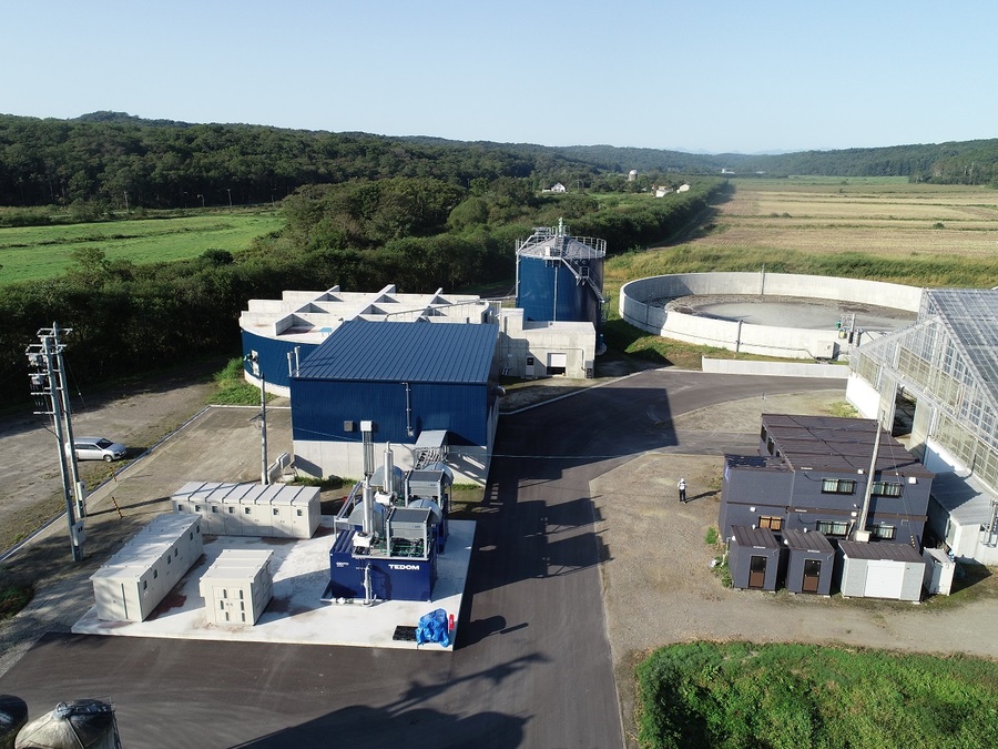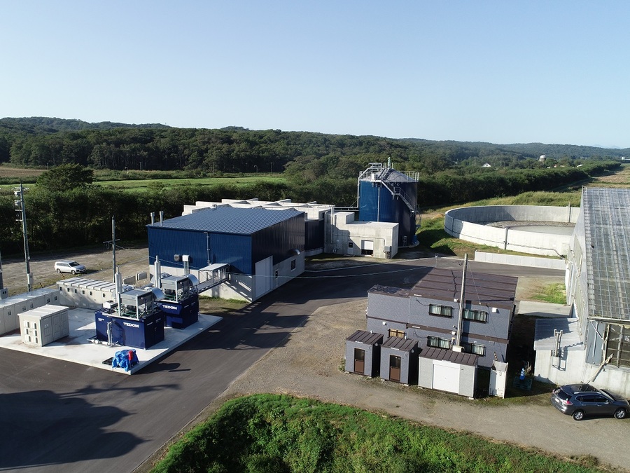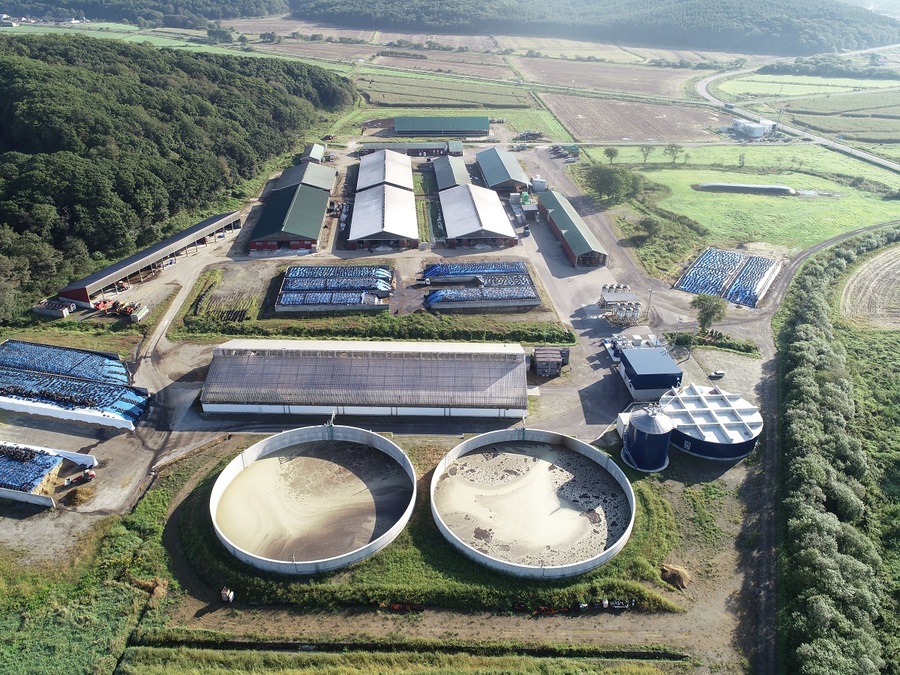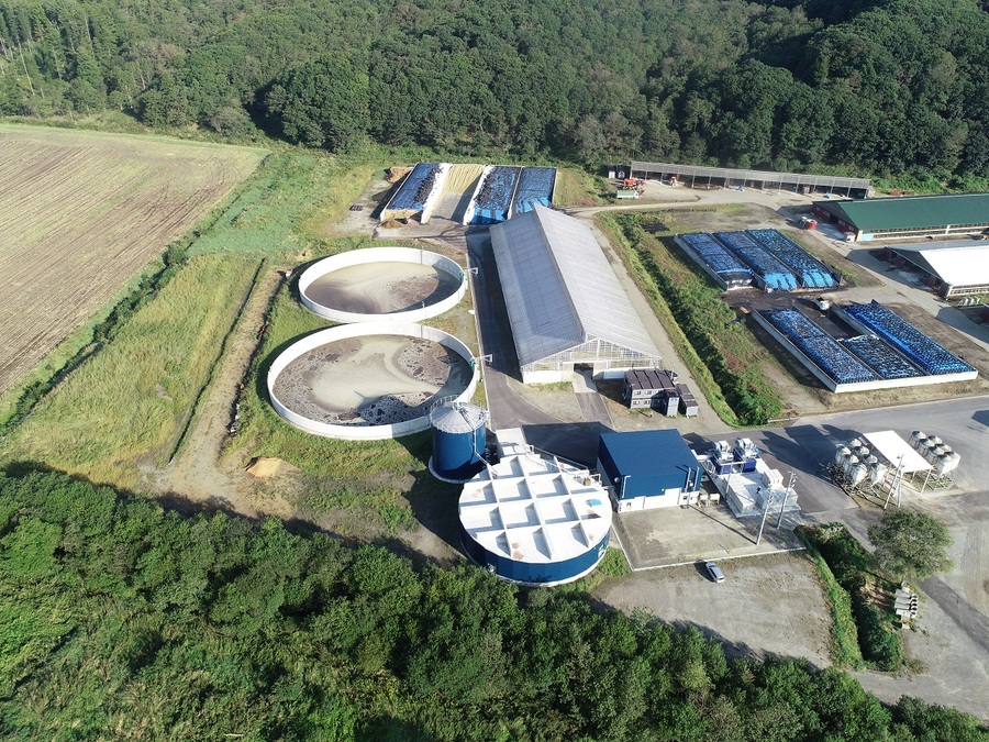 【嫌気性メタン発酵処理施設一式】牛1,200頭分の1日ふん尿量97tを処理し、毎時400kwの発電可能。自家消費分を除いた360kwを売電し、消化液を一日80t並びに敷料を16t生成する施設。