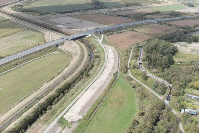 | 工事内容 | 【漁太築堤工区】 工事延長 L≒990m 河川土工 盛土(ICT) V≒3,480m3 土砂混合攪拌 V≒5200m3、 光ケーブル配管工 配管(φ50・φ80) L≒260m 【嶮淵川右岸築堤工区】 工事延長 L≒260m 河川土工 掘削(ICT) V≒630m3 盛土(ICT) V≒8,000m3 土砂混合攪拌 土砂混合攪拌 V≒10,300m3 |