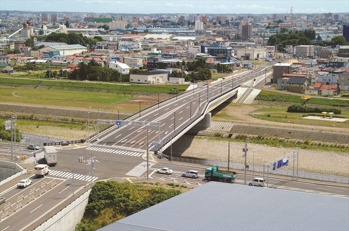 苗穂駅前と白石・厚別区を結ぶ平和通の豊平川に架かる橋梁工事。