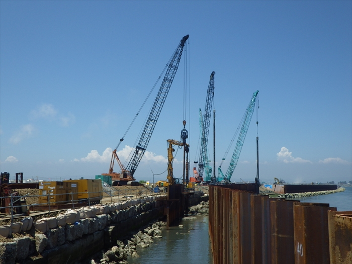 東日本大震災により被災した名取川閖上河口部の津波対策として既設堤防を嵩上げする工事