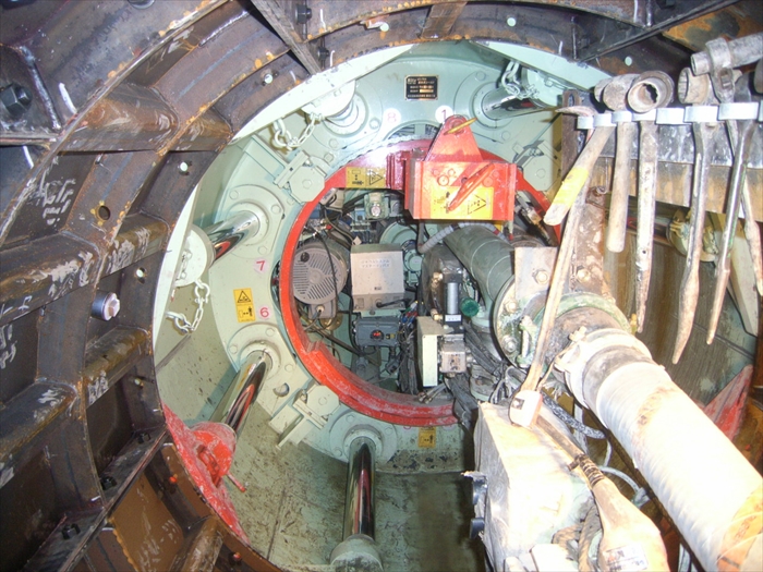 | 工事内容 | 密閉型シールドトンネル、延長1090m、セグメント外径2000㎜、仕上り内径800㎜、ニューマチックケーソン工 最大気圧 2.6気圧 作業室面積 63m2 |